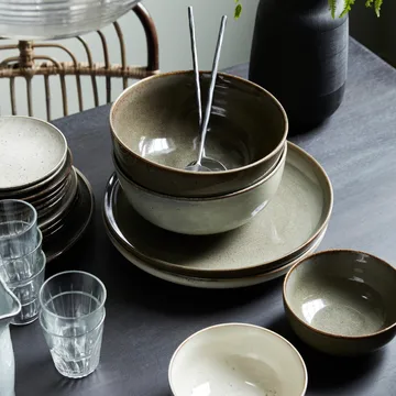Lake kulho Ø 22 cm House Doctorilta on posliinikulho, joka on suunniteltu arjen kattauksiin ja rauhallisiin illallisiin. Rauhoittava tummanvihreä lasite antaa lämpimän tunteen ja kehystää ruoan, jotta jokainen annos saa tyylikkään taustan. Kulho sopii yhtä hyvin pastasalaateille, pataruoille tai keitoille ja tulee nopeasti luotettavaksi osaksi astiastoa. Pienet vaihtelut lasitteessa ja rustiikkiset yksityiskohdat tekevät jokaisesta kappaleesta ainutlaatuisen ja antavat pöydälle persoonallisuutta