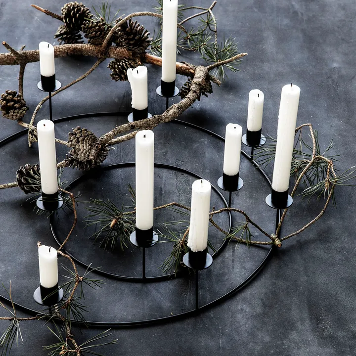Pyöreä kynttiläteline on kaunis kynttiläteline tanskalaiselta House Doctorilta. Kynttiläteline on musta ja valmistettu raudasta. Pelkistetty ja yksinkertainen muotoilu koostuu renkaasta, jossa on tilaa neljälle kynttilälle. Sitä voi käyttää adventtikynttilänä, mutta myös tavallisena kynttilätelineenä ympäri vuoden. Hienon ja yksinkertaisen muotoilunsa ansiosta kynttiläteline sopii täydellisesti moniin koteihin. Aseta se pöydän keskelle, sytytä kynttilät ja tarjoa ystäville ja perheelle ihana illallinen