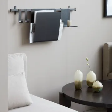 Virar hattu- ja hyllyjärjestelmä House Doctorilta on käytännöllinen ja tyylikäs ratkaisu moniin käyttötarkoituksiin. Hylly antaa sinulle vapauden muokata tuotetta haluamallasi tavalla ilman, että sen kauneus katoaa. Koukut, lokero ja hyllylevyt tarjoavat useita säilytysmahdollisuuksia. Käytä sitä esimerkiksi keittiössä keittiöpyyhkeille, keittokirjoille tai muille keittiötarvikkeille.