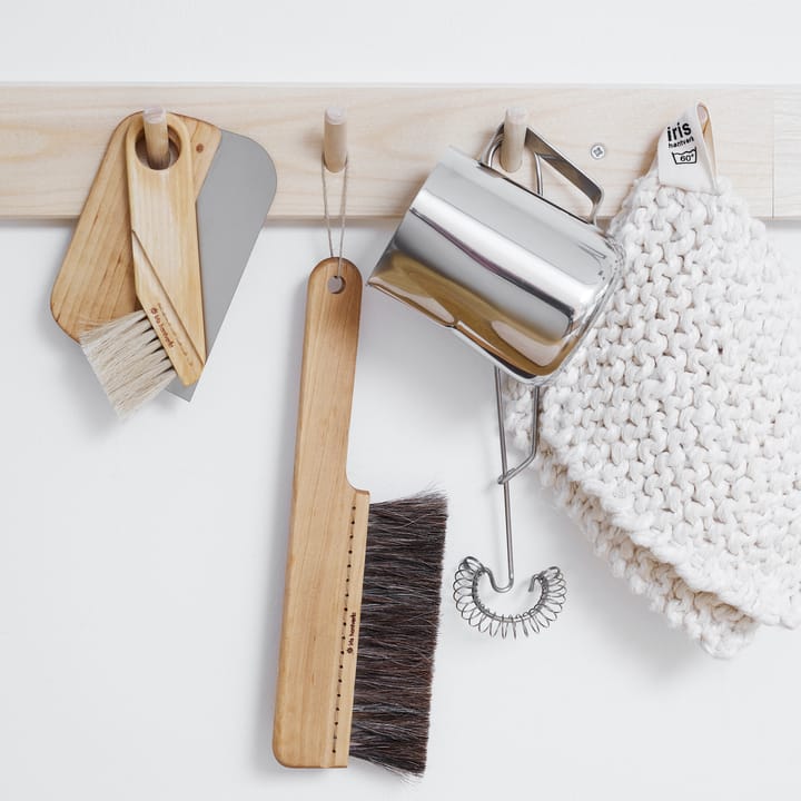 Iris pullasuti jouhilla, käsityötä on puhdasta ja hienoa käsityötä parhaimmillaan. Pullaohennin on valmistettu koivusta, joka on öljytty kestävyyden ja pehmeän tuntuman vuoksi. Harjakset ovat jouhia, jotka helpottavat pullan voitelua. Täydellinen antamaan viikonlopun pullalle se pieni lisäilme