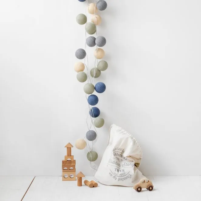 Irislights Breeze on kaunis koristevalosarja, jossa on LED-lamput ja käsintehdyt beigen, harmaan ja sinisen sävyiset pallot. Käytä mielikuvitustasi ja keksi persoonallinen paikka valosarjallesi!