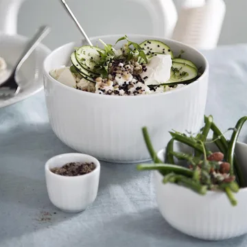Kählerin keskisuuri Hammershøi-kulhosopii tarjoiluastiaksi tai vaikkapa perunalastuille. Hans-Christian Bauerin suunnittelemassa keramiikkakulhossa on kaunis uritus, joka antaa tyylikkyyttä arkisellekin kattaukselle. Valittavanasi on eri värejä.