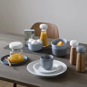 Hammershøi maustemylly iso Kähleriltä on elegantti yhdistelmä puuta ja keramiikkaa, jossa muoto ja toiminnallisuus ovat täydellisessä tasapainossa. Hans-Christian Bauerin suunnittelemassa myllyssä on sarjalle tunnusomaiset urat, jotka ovat saaneet inspiraationsa taiteilija Svend Hammershøin varhaisista 1900-luvun alkuperäisvaaseista. Lasitetusta keramiikasta valmistettu, uritettu kansi tarjoaa varman otteen ja kätkee sisälleen tehokkaan CrushGrind®-mekanismin, joka tunnetaan tarkkuudestaan ja kestävyydestään. Hammershøi maustemylly on luonteva osa katettua pöytää – ajaton, funktionaalinen ja kaunis, samaa skandinaavista harmoniaa heijastaen kuin koko Kählerin sarja.