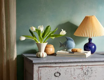 Signature maljakko 15 cm on käsinmaalattu kivitavarasta valmistettu maljakko, jonka on suunnitellut Meyer-Lavigne ja jonka ilmeessä on ilmeikäs kukkatorvimainen muoto. Sen raidat seuraavat luonnon rytmiä nousten ylöspäin luoden liikettä ja eloa, ja maljakko toimitetaan keramiikka-alustan kanssa, jossa on reikä ja joka on saanut inspiraationsa lootuksen siemenkodasta helppoja, kauniita asetelmia varten. Käytä lautasta kiinnittämään yksittäisiä varsia tai poista se perinteistä sidottua kimppua varten. Koristeellinen ja toiminnallinen maljakko, joka korostaa kukkia ja kotia