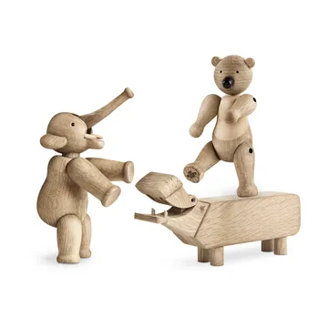 Kay Bojesen Liliput 3 osaa Kay Bojesenilta koostuu hurmaavasta karhusta, iloisesta elefantista ja leikkisästä virtahevosta pienemmässä koossa. FSC®-sertifioidusta tammesta ja vaahterasta valmistetut puuhahmot huokuvat laatua ja käsityötaitoa. Täydellinen lahja designin ystävälle