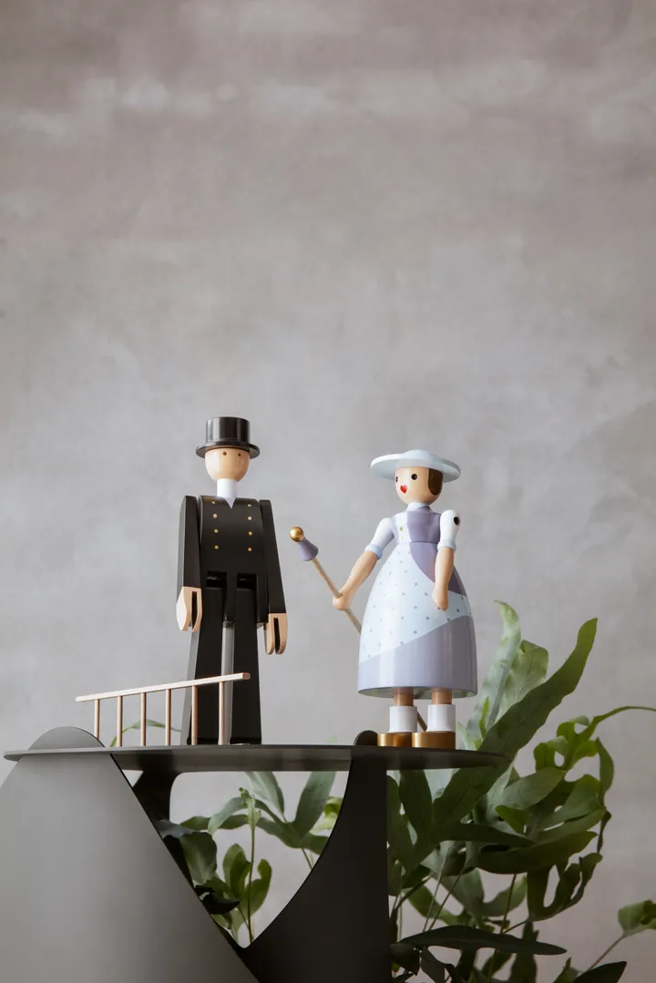 Kay Bojesen nuohooja Kay Bojesen Denmarkiltä on ajaton puuveistos Figurines-kokoelmasta, suunniteltu Kay Bojesenin toimesta. Valmistettu FSC-sertifioidusta pyökkipuusta ja käsin maalattu huolellisesti, nuohooja välittää leikkisyyttä ja lämpöä kiiltävillä napeillaan, valkoisella huivillaan ja ikonillisella silinterihatullaan. Suora, ylpeä ryhti antaa kertovan luonteen, joka herättää mielikuvituksen — täydellinen hyllylle, ikkunalle tai lahjaksi jollekulle, joka arvostaa käsityötä ja sielukasta muotoilua. Viehättävä yksityiskohta, joka tuo iloa kotiin