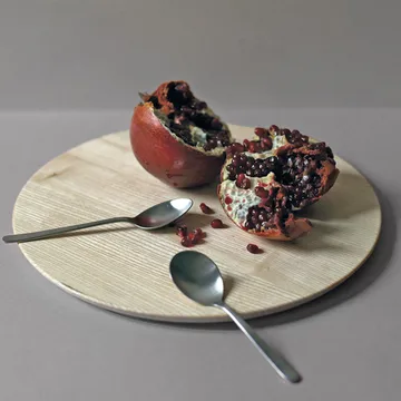 KAY tarjoilulautanen Ø 30 cm on Kay Bojesenin valmistama puinen tarjotin, joka on tehty saarnesta ja jolla on sama pehmeä, pyöreä siluetti kuin KAY- posliinilautasilla. Tarjoilulauta on kätevä koko juustojen, tapasten ja leikkeleiden asetteluun. Samoin se on käytännöllinen koko leikkuulaudaksi ja leivän viipalointiin.