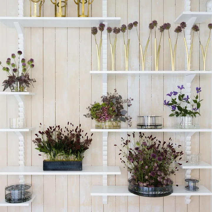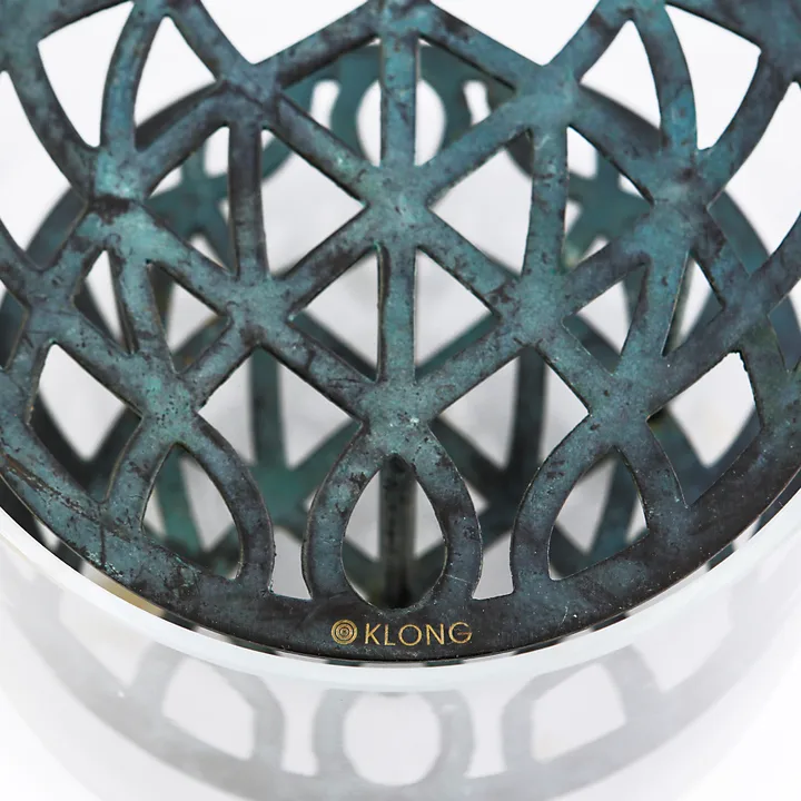 Äng maljakko, pieni KLONGilta on elegantti suupuhallettu lasimaljakko, suunnittelija Eva Schildt. Sen tunnistettava leikattu metalliteline toimii sisäänrakennettuna kukantukena ja antaa kullekin asetelmalle vakautta ja kaunista rakennetta. Metallikuosi on käsintehty, joten jokainen maljakko on ainutlaatuinen pienine vaihteluineen yksityiskohdissa. Maljakko yhdistää tunteen ja toiminnallisuuden — täydellinen kimppuihin tai yksittäisiin oksiin kotiin.