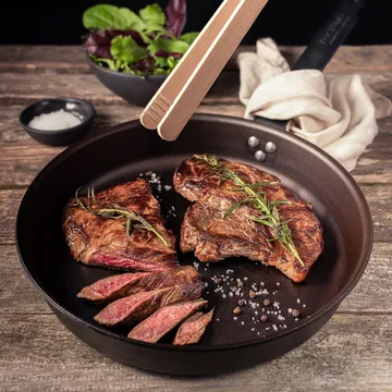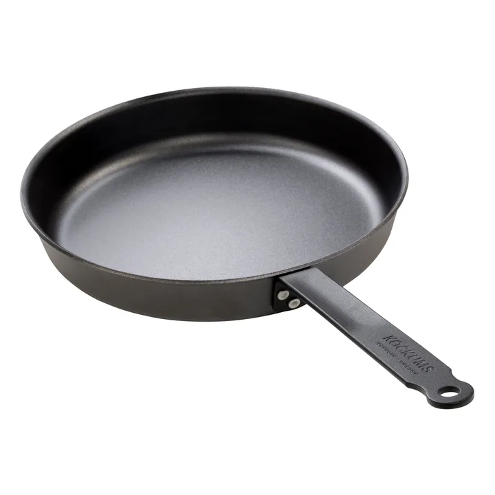 Kockums paistinpannu hiiliteräs Kockums Jernverkiltä on hyvin tasapainotettu paistinpannu, valmistettu Anderstorpissa ruotsalaisesta 3 mm SSAB:n hiiliteräksestä. Se on noin 20 % kevyempi kuin valurautapata ja siinä on hiontapintainen pinta, käsitelty ruotsalaisilla kasviöljyillä erinomaisia paisto-ominaisuuksia ja luonnollista tarttumattomuutta varten — valmis käytettäväksi suoraan ilman sisäpintapolttoa. Sen suorempi, korkeampi reuna antaa suuremman pohjapinta-alan ja enemmän paistotilaa, samalla kun pannu kestää korkeita lämpötiloja, johtaa lämpöä tasaisesti ja sopii kaikille lämmönlähteille sekä uuniin jopa 200° asti. Mustaksi maalattu kahva, jossa on kohokuvioitu Kockums-logo, sisältää reiän ripustusta varten. Kestävä, Ruotsissa valmistettu paistinpannu, joka paranee käytössä aikaa myöten
