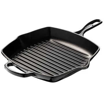 Le Creuset valurautainen 26 cm grillipannu on varustettu käytännöllisellä kahvalla sekä apukahvalla, jotka helpottavat ja tekevät ruoanlaitosta turvallisempaa. Sisäpuolen musta emali on erinomainen ruoanlaitossa, jossa korkea pintalämpötila on välttämätön. Valurautapannu on neliönmuotoinen ja sen houkutteleva muotoilu sisältää kahvan, joka on samanvärinen kuin muu grillipannu. Uritettu pinta antaa lihapalalle tai kasviksille kauniit raidat, jotka muistuttavat grillauksessa syntyvää paistopintaa. Grillipannu on yksi monista ihanasti värikkäistä tuotteista arvostetulta Le Creuset'lta. Yhdenmukaisen kattauksen luomiseksi yhdistä mielellään useampiin samanvärisiin tuotteisiin tai ole luova ja sekoita eri värejä saadaksesi silmiinpistävän kokemuksen. Valmistaja myöntää tuotteelle elinikäisen takuun.