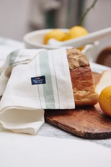 Side striped organic cotton -lautasliina 50x50 cm Lexingtonilta on ajaton lautasliina, valmistettu ekologisesta puuvillasta ja se antaa kattaukselle huolellisen ja rentoutuneen ilmeen. Siinä on käännetty reuna, pystysuorat raidat molemmin puolin ja Lexingtonin logo ommeltuna nurkkaan. Valmistettu Intiassa ekologisesta puuvillatwillistä köydenkudoksella, se on sekä pehmeä että kestävä — täydellinen arkisille illallisille, viikonloppuaamiaisille tai silloin, kun haluat lisätä pientä ekstraa kattaukseen. Helppo yhdistää muihin tekstiileihin persoonallisen ja kutsuvan kattauksen luomiseksi