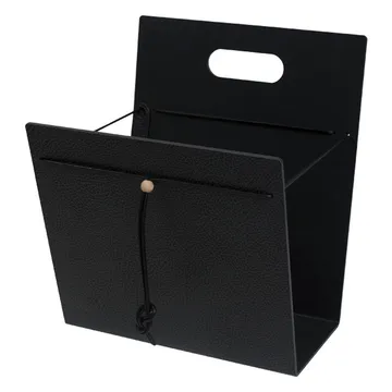 Magazine Holder Hippo M från tanskalaiselta LIND DNA:lta on käsityönä valmistettu design-tuote, joka sopii täydellisesti lehtien tai postin säilytykseen. Lehtiteline on alumiinia ja päällystetty kierrätetyllä krokotiilista inspiroituneella nahalla, ja yksinkertainen nahkanaru pitää sisällön paikallaan. Etupuolella olevaa puuhelmeä siirtämällä narua voi helposti säätää. Aseta lehtiteline lattialle tai ripusta se seinälle mukana toimitettavalla asennustelineellä, mikä sopii parhaiten kotiisi.