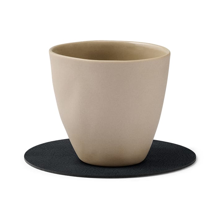 Saat kaksi lasinalusta yhdessä LIND DNA:n kaksipuolisella Cloud Circle -alusella. Alusta on valmistettu kierrätetystä nahasta ja kumista, yhdistelmästä joka tekee pinnasta kulutusta kestävän ja helppohoitoisen sekä pitää sen tukevasti pöydällä. Alustalla on pehmeä ja matta pinta, ja koska se on kaksipuolinen, saat kaksi väriä vaihteluun, jolloin voit helposti ja käytännöllisesti muuttaa ilmettä