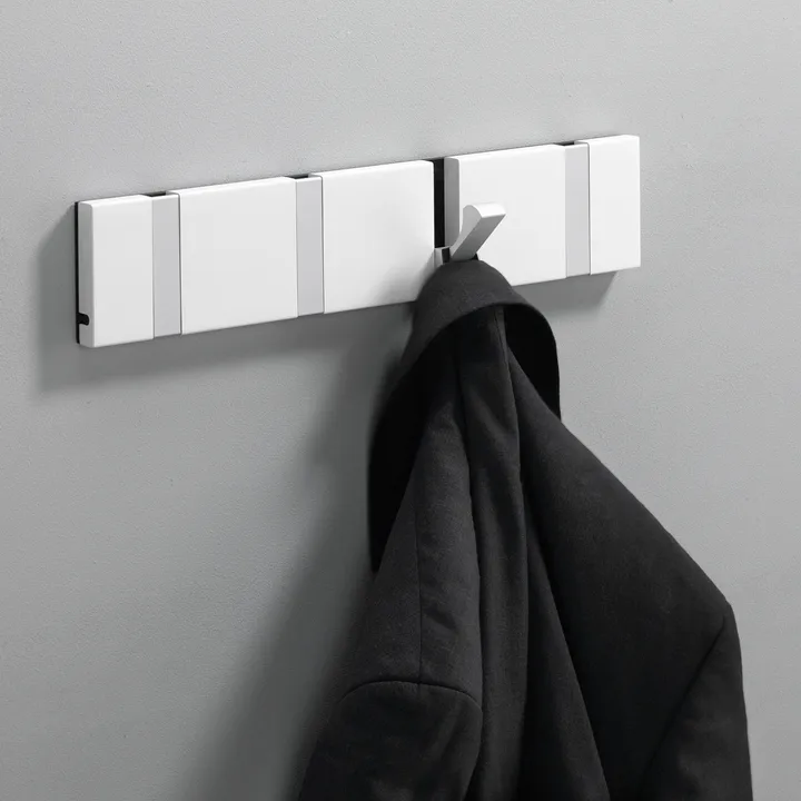 Knax seinäripustin 2 koukkua LoCa yhdistää toiminnallisuuden ja muotoilun. Jousitetuilla koukuilla tämä ripustin pitää takit ja pyyhkeet turvallisesti ja piilossa silloin kun niitä ei käytetä. Älykkäät koukut avautuvat helposti tarvittaessa ja menevät automaattisesti sisään kun niitä ei tarvita. Toimitetaan kahden ruuvin kanssa helppoon seinäkiinnitykseen, täydellinen kotiin. Suunniteltu Harrit & Sørensenin toimesta