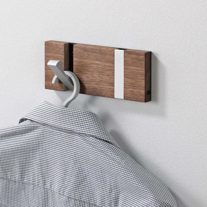 Knax seinäripustin 8 koukkua LoCa:lta on suunniteltu Harrit & Sørensenin toimesta. Jousitetuilla koukuilla se tarjoaa älykkään säilytysratkaisun. Koukut avautuvat helposti takkeja ja pyyhkeitä varten ja palautuvat automaattisesti sisään, kun niitä ei käytetä. Toimitetaan kahden ruuvin kanssa helppoa seinäkiinnitystä varten