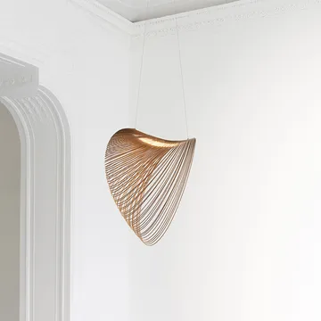 Illan riippuvalaisin Luceplanilta yhdistää teknologista innovaatiota ja kestävää muotoilua. Se koostuu kevyestä, laserleikattusta vanerista, joka antaa sille ainutlaatuisen muodon. Ripustettaessa se muotoutuu elegantisti painovoiman ansiosta. LED-lähde tuottaa pehmeän ja rentouttavan valon, täydellinen luomaan miellyttävä tunnelma huoneeseen. Ympäristöystävällinen valaistusratkaisu, joka on FSC-sertifioitu ja tuo enemmän kuin pelkkää valoa
