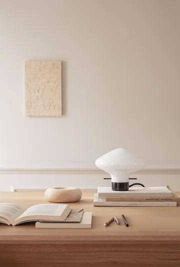 Repose 175 pöytälamppu on valmistettu opaali‑lasista ja säteilee rauhallista tunnelmaa vaimealla valollaan ja pehmeillä muodoillaan. Lamppu on suunniteltu GamFratesin toimesta ja kuuluu REPOSE-sarjaan, joka on tunnettu käsityötaidostaan ja kontrastoivasta estetiikastaan