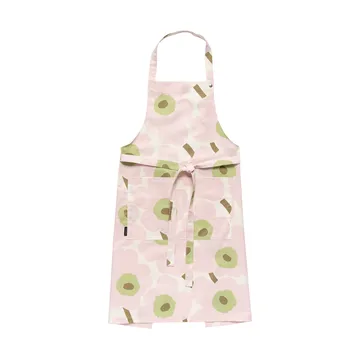 Pieni Unikko esiliina suomalaiselta merkiltä on valmistettu puuvillasta, johon on painettu Maija Isolan tunnettu kukkakuvio. Esiliina on kaunis lisä useimpiin keittiöihin ja sopii lähes kaikille. Edessä on tasku, jossa voit säilyttää reseptejä, keittiövälineitä tai muita pikkutavaroita. Yhdistä esiliina hienoihin keittiötarvikkeisiin ja muihin Marimekon ihanan kuviollisiin tekstiileihin.