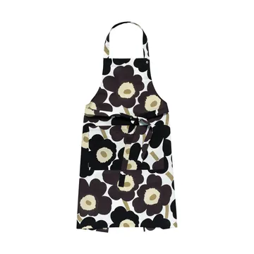 Pieni Unikko esiliina suomalaiselta merkiltä on valmistettu puuvillasta, johon on painettu Maija Isolan tunnettu kukkakuvio. Esiliina on kaunis lisä useimpiin keittiöihin ja sopii lähes kaikille. Edessä on tasku, jossa voit säilyttää reseptejä, keittiövälineitä tai muita pikkutavaroita. Yhdistä esiliina hienoihin keittiötarvikkeisiin ja muihin Marimekon ihanan kuviollisiin tekstiileihin.