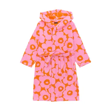 Pieni Unikko kylpytakki L Marimekolta on tilava puuvillainen aamutakki, joka yhdistää mukavuuden ja klassisen kukkakuvion. Kätevät taskut ja vyötärönauha tekevät siitä helpon käyttää kotona