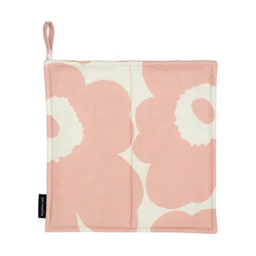 Pieni Unikko patalappu 21,5x21,5 cm Marimekolta on käytännöllinen ja iloinen keittiöyksityiskohta, jossa on Maija Isolan suunnittelema ikoninen kukkakuvio. Patalappu suojaa käsiä ja pintoja, kun otat kuumia kattiloita uunista tai tarjoilet ruokaa suoraan uunista. Kestävä rakenne tekee siitä helpon käyttää päivittäin ja kuvio antaa keittiölle leikkisän, persoonallisen ilmeen. Täydellinen pitää lähellä hellaa tai kauniina yksityiskohtana työtasolla — pieni designklassikko, joka tekee arjesta sekä turvallisempaa että kauniimpaa