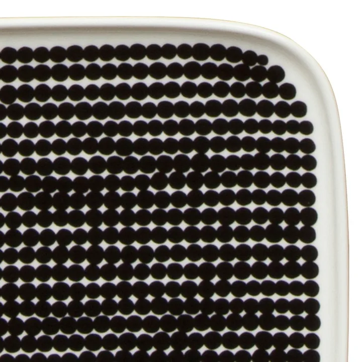 Yksinkertaisen, mutta leikkimielisen kattauksen saat aikaan Marimekon Räsymatto lautasella. Itse lautanen on Sami Ruotsalaisen muotoilema ja kuosi on Maija Louekarin käsialaa. Lautanen on valmistettu korkealaatuisesta kivitavarasta ja klassinen musta-valkoinen pilkkukuvio on helppo yhdistää muuhun kattaukseen.