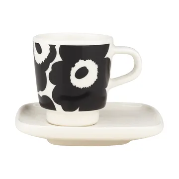 Unikko espressokuppi ja lautanen 2 osaa, Musta-valkoinen Marimekko
