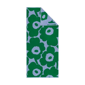 Unikko kylpypyyhe 70 x 150 cm Marimekolta on pehmeä ja koristeellinen kylpypyyhe, jonka on suunnitellut Maija Isola ikoniseen Unikko-kokoelmaan. Luomupuuvillafroteesta valmistettu pyyhe tarjoaa hyvän imukyvyn ja miellyttävän tunteen ihoa vasten. Kuvion värit ovat käänteiset toisella puolella, mikä tuo leikillistä kaksipuolisuutta ja piristää kylpyhuonetta. Täydellinen kietoutua suihkun jälkeen tai ottaa mukaan altaan reunalle — ajaton design, joka tuntuu sekä henkilökohtaiselta että iloiselta