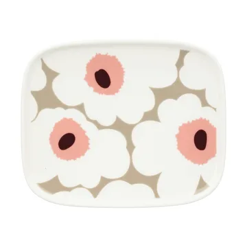 Unikko lautanen 12x15 cm Marimekolta on suorakaiteenmuotoinen assietti, joka on koristeltu ikonillisella Unikko-kuviolla, jonka on suunnitellut Maija Isola. Valmistettu kestävästä kivitavarasta, se sopii arkeen ja erityisiin tilaisuuksiin yhtä hyvin — kestää astianpesukoneen, uunin, mikroaaltouunin ja pakastimen, mikä tekee siitä erityisen käytännöllisen keittiössä. Yksinkertainen muoto ja voimakas kuvio tekevät lautasesta täydellisen pikkuruokien, leivonnaisten tarjoiluun tai koristeelliseksi yksityiskohdaksi pöydässä, joka korostaa ruokaa. Poista pohjassa oleva tarra ennen käyttöä