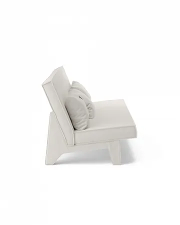 BAM! 3-istuttava sohva Massproductionsilta on suunniteltu Chris Martinin toimesta suoraviivaisin geometrisin muotoilin. Sohvan jalat ja mukana tulevat tyynyt on verhoiltu samalla kankaalla kuin muu käsinojattoman sohvan verhoilu