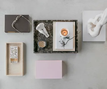 Marble koristetarjotin large 30x40 cm merkiltä Mette Ditmer on valmistettu kestävästä ja painonkestävästä marmorista. Jokainen alusta on ainutlaatuinen värin ja rakenteen vaihteluiden ansiosta. Käytä sitä koristeellisena elementtinä kaikissa huoneissa, luodaksesi lumoavia asetelmia tai tyylikkäänä järjestäjänä. Sen luonnollinen materiaali tuo mukanaan rauhan ja lämmön tunteen.