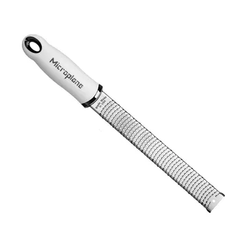 Premium Classic raastin 33 cm Microplane-tuotemerkiltä on terävä ja ketterä raastin tarkkaan zestaukseen ja hienoraastamiseen keittiössä. Patentoitu, syövytetty terä tuottaa tasaisen lopputuloksen vähällä vaivalla ja säilyttää raaka-aineiden aromit. Miellyttävästi käteen istuva kahva ja etuosan suojaavat nystyrät pitävät raastimen vakaasti alustaa vasten naarmuttamatta. Täydellinen sitrushedelmien kuorelle, valkosipulille, parmesaanille, inkiväärille, kurkumalle ja muskottipähkinälle. 33 cm pituus tarjoaa hyvän ulottuvuuden ja hallinnan ruoanlaitossa ja leivonnassa. Itsestään selvä valinta sinulle, joka haluat syventää makuja ja työskennellä nopeasti tinkimättömällä tarkkuudella.