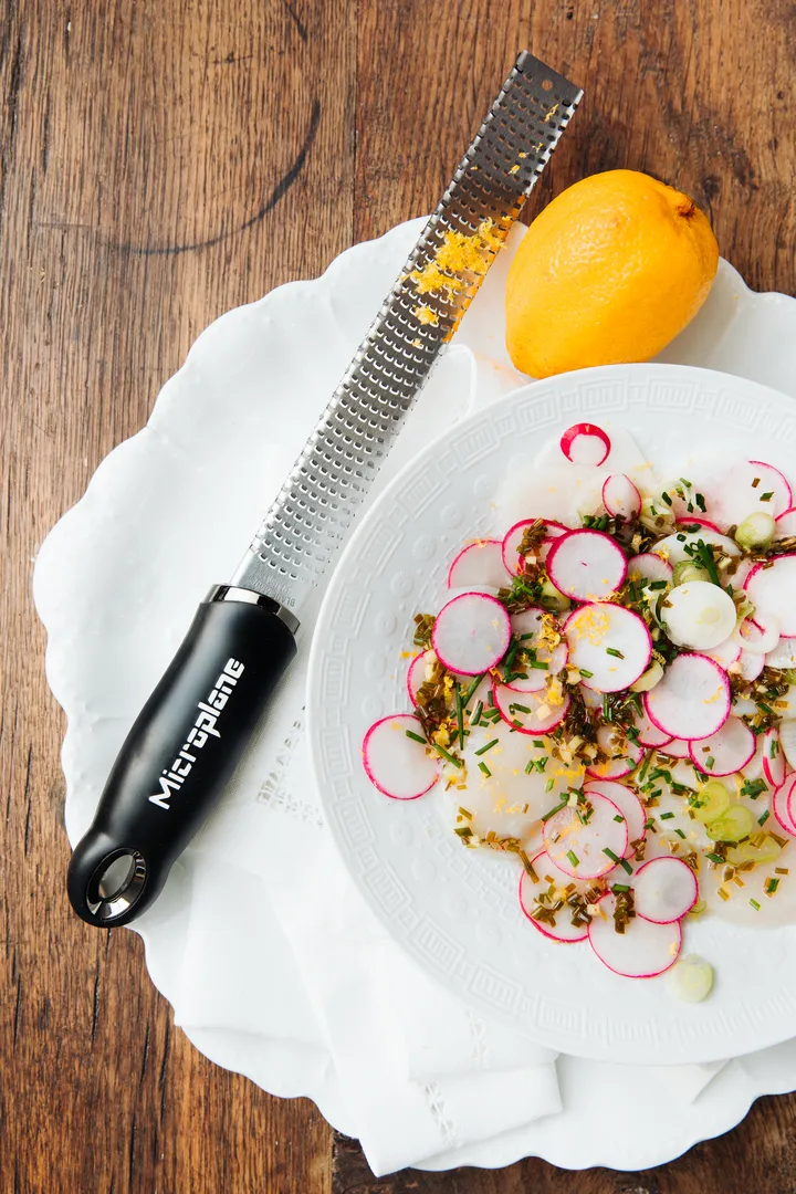 Premium klassinen zestiraastin Microplanelta on täydellinen työkalu parmesaanin, sitrusten, valkosipulin ja inkiväärin raastamiseen. Kirurgisen ruostumattoman teräksen terävä leikkuupinta antaa tarkat tulokset. Ergonomisella soft-touch-kahvalla ja tukevilla kumijaloilla se on helppokäyttöinen. Turvallista säilytystä varten mukana tulee uudelleenkäytettävä suojakotelo. Valmistettu Yhdysvalloissa, koottu Meksikossa, ja rakastettu kokkien keskuudessa ympäri maailmaa