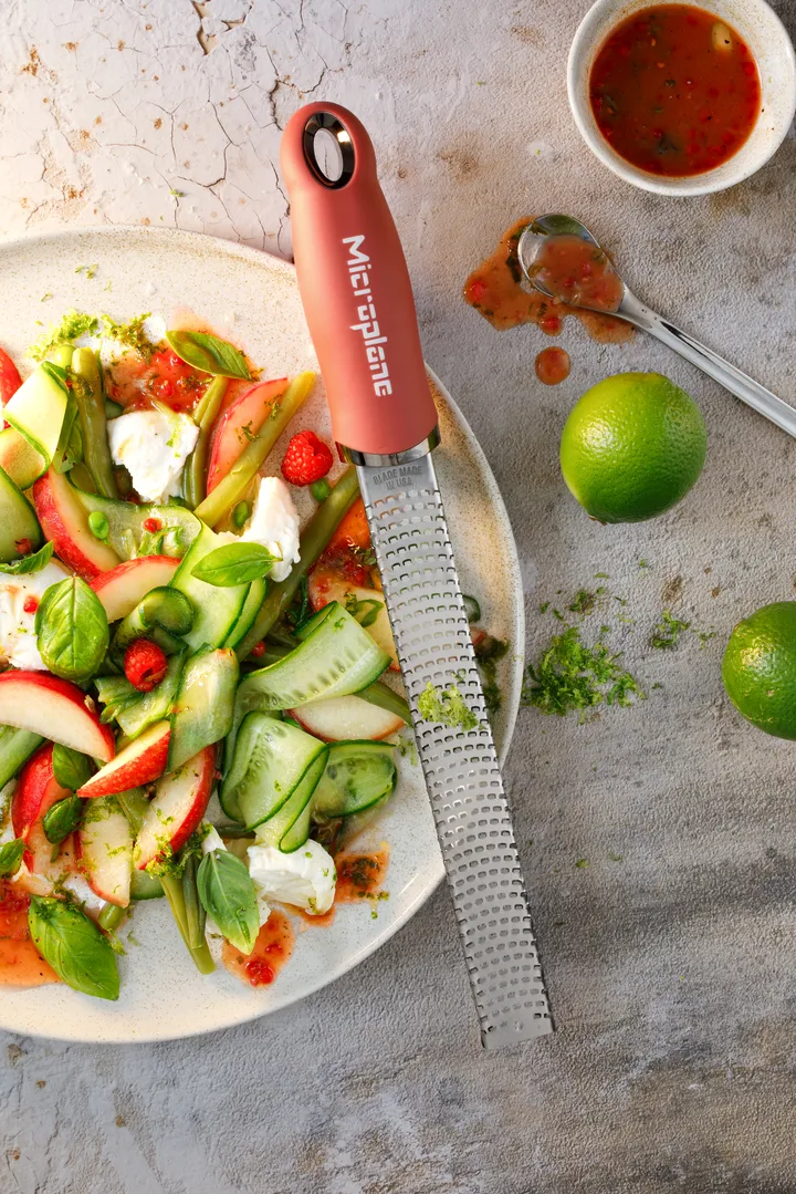 Premium klassinen zestiraastin Microplanelta on täydellinen työkalu parmesaanin, sitrusten, valkosipulin ja inkiväärin raastamiseen. Kirurgisen ruostumattoman teräksen terävä leikkuupinta antaa tarkat tulokset. Ergonomisella soft-touch-kahvalla ja tukevilla kumijaloilla se on helppokäyttöinen. Turvallista säilytystä varten mukana tulee uudelleenkäytettävä suojakotelo. Valmistettu Yhdysvalloissa, koottu Meksikossa, ja rakastettu kokkien keskuudessa ympäri maailmaa