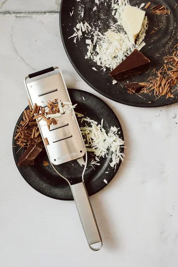 Professional Series 2.0 suuri höyläraastin 30 cm Microplanelta on osa Professional 2.0 -mallistoa. Ruostumattomasta teräsleikkuuterästä on täydellinen raastaa suklaata, kovaa juustoa, tryffeliä, kookosta, porkkanaa, kesäkurpitsaa ja voita. Valmistettu Yhdysvalloissa, tämä raastin tarjoaa vaikuttavaa suorituskykyä ja kestävyyttä. Edistyneen fotolyönnön ansiosta terän terävyys on ylittämätön, mikä antaa tarkat viillot ilman raaka-aineiden repeämistä. Ruostumattomasta teräksestä valmistettu kahva ja kehys vahvistavat raastimen kestävyyttä ja eleganssia