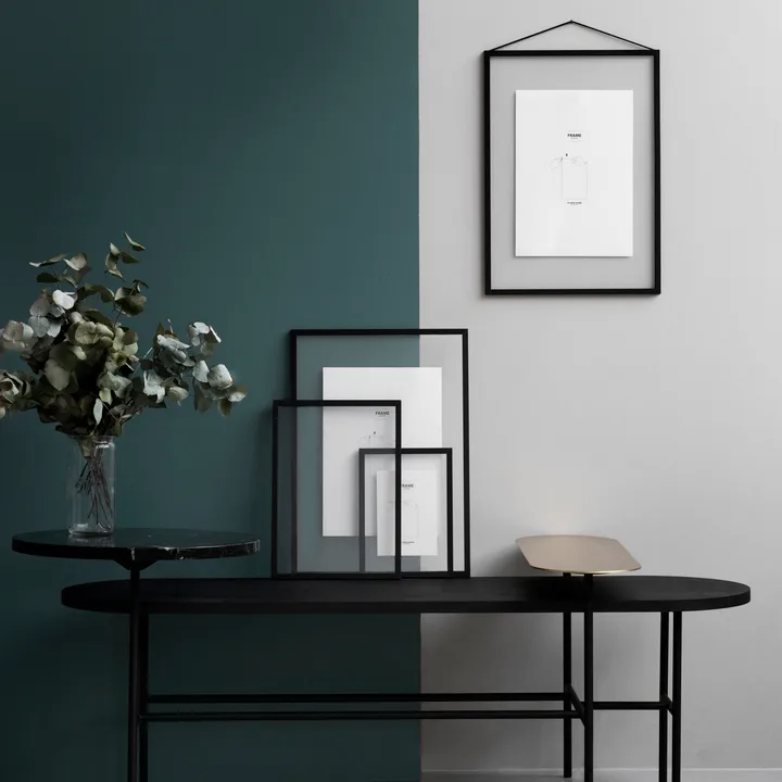 Moebe Frame A3 31,7x44 cm Ramen Frame tanskalaiselta merkiltä MOEBE on yksinkertainen, tyylikäs kehys, joka antaa kehystettävän asian tehdä ilmeen. Kehys, jossa on kaksipuolinen kirkas akryylilasi, pidetään koossa läpi kehyksen kulkevalla kumilenkillä. Kumilenkki toimii samalla kauniina ripustusyksityiskohtana. Täytä kehyksesi kuivatuilla kukilla, postikorteilla tai valokuvakollaasilla ja luo näin täysin henkilökohtainen taulusi. Yhdistä mielelläsi eri kokoja, materiaaleja ja värejä