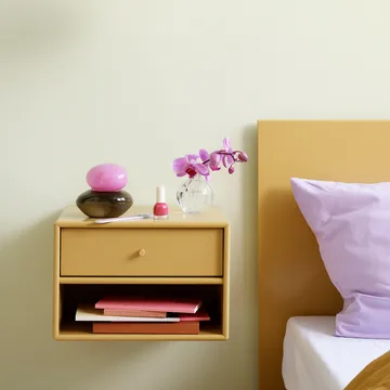Dash on pieni yöpöytä merkiltä Montana. Tämä pieni yöpöytä sopii täydellisesti välttämättömien tavaroiden säilyttämiseen, ja se on helppo asentaa seinälle sängyn viereen valmiiksi porattujen reikien ansiosta. Se toimii yhtä hyvin eteisessä kauniina eteisen säilytysyksikkönä. Yöpöytä on saatavana kaikissa Montanan väreissä, ja se voidaan toimittaa ripustimella, jaloilla, jalustalla tai pyörillä.