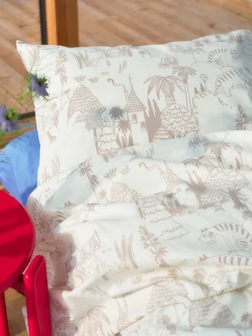 Muumit vuodevaatesetti 240x210 cm on valmistettu 100% ekologisesta GOTS-sertifioidusta puuvillasta ja sen koristeena on Tove Janssonin rakastetut Muumi-kuvitukset. Tämä pehmeä ja kestävä vuodevaatesetti tuo makuuhuoneeseesi kodikkaan ja mielikuvituksellisen tunnelman