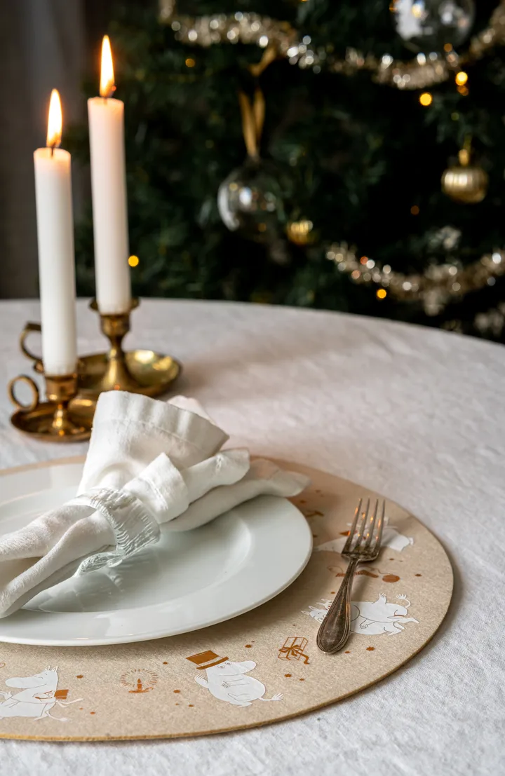 Moomin pöytätabletti Ø38 cm Muurla on pyöreä pöytätabletti, joka on valmistettu huopamaisesta, kierrätetystä PET-materiaalista. Viehättävä kattausalusta on koristeltu Tove Janssonin ja muumien hurmaavalla kuvituksella, tuoden iloa perheen yhteisiin aterioihin ja kahvihetkiin. Tutustu Muurlan laajaan valikoimaan pöytätabletteja, tarjottimia ja muihin tuotteisiin, joita koristavat rakastetut muumit