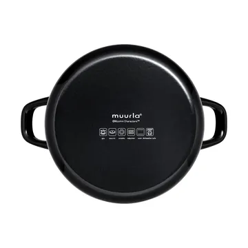 Muumi emalipata korkea kansi 3,5 L Muurla on tilava ja käytännöllinen pata, jossa on Tove Janssonin suunnittelema kuvitus. Hiiliteräksinen ydin ja kaksinkertainen emalipinnoite tekevät siitä kestävän ja toimivan. Sopii kaikille lämmönlähteille induktiosta avotuleen ja on helppo puhdistaa. Tilavuus 3,5 litraa, ja sitä koristavat hurmaavat Muumi-aiheet – ihana yksityiskohta keittiöön