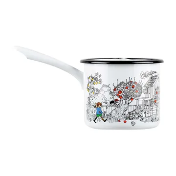Pippi The Way Home -kattila 1,3 litraa Muurla on kaunis ja hyvin muotoiltu kattila, jossa on Astrid Lindgrenin tunnetuista Pippi Pitkätossu -tarinoista lähtöisin olevia kuvituksia. Kattilassa on hiiliteräksinen ydin ja kaksi emalikerrosta, jotka tekevät siitä kevyen ja helposti puhdistettavan. Huolellisen ja toimivan muotoilunsa lisäksi kuvitus tekee siitä myös kauniin sisustuselementin sekä keittiöön että kattausta täydentämään. Yhdistä mielellään muihin Pippi Pitkätossu -sarjan tuotteisiin.