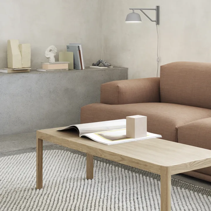 Workshop sohvapöytä Muutolta, suunnitellut Cecilie Manz, on perinteisen materiaalin mestariteos hienovaraisilla yksityiskohdilla. Pöydän sulava saumaton siirtymä pöytätason ja jalkojen välillä luo hienostuneen estetiikan. Workshop-pöytä tarjoaa toiminnallista monipuolisuutta, joka tekee siitä täydellisen sekä sohvapöydäksi että sivupöydäksi