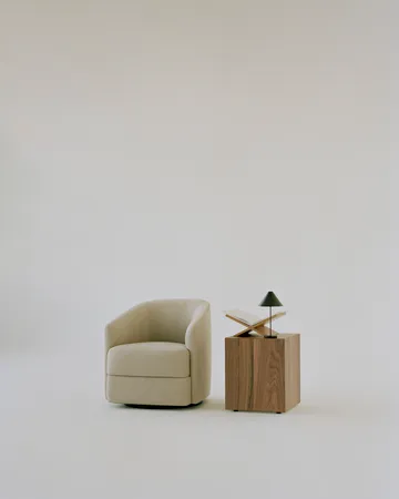 Mass sivupöytä 40x40x47 cm från New Works on neliömäinen pöytä, valmistettu pähkinäpuusta minimalistisella muotokielellä. Tyylikäs sivupöytä tarjoaa alustan veistoksellisille esineille tai käytännöllisesti avustuspöytänä sängyn tai nojatuolin vieressä