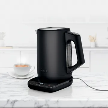 Ninja KT200 vedenkeitin lämpötilansäädöllä 1,7 L on vedenkeitin, joka auttaa sinua valmistamaan täydellisen kupin joka kerta, riippumatta siitä, pidätkö teestä, kahvista vai kaakaosta. Valitse 6 ennalta määritetystä lämpötilasta 60 °C:sta 100 °C:hen saadaksesi täydellisen makuprofiilin kuumasta juomastasi. Pikatila kiehauttaa kupillisen alle 50 sekunnissa ja keep-warm-ominaisuus pitää valitun lämpötilan jopa 30 minuutin ajan.