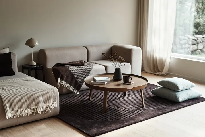 Levels villamatto circles ruskea NJRD:ltä on Bernadotte & Kylbergin suunnittelema, käsintuftattu villamatto, joka nostaa tilan ilmettä kahden osittain päällekkäisen ympyrän graafisella kuviollaan. Erityinen leikkaustekniikka luo vaihtelevan nukan korkeuden ja yhdessä raidoituksen kanssa muodostaa vaikuttavan geometrisen ilmeen. 100 % uusiseelantilaisesta villasta valmistettu matto tuntuu pehmeältä jalkojen alla, vaimentaa ääniä ja antaa kauniin kiillon. Luonnonmateriaalin likaa hylkivät ja vettä torjuvat ominaisuudet tekevät siitä helppohoitoisen ja täydellisen sekä olohuoneeseen että makuuhuoneeseen