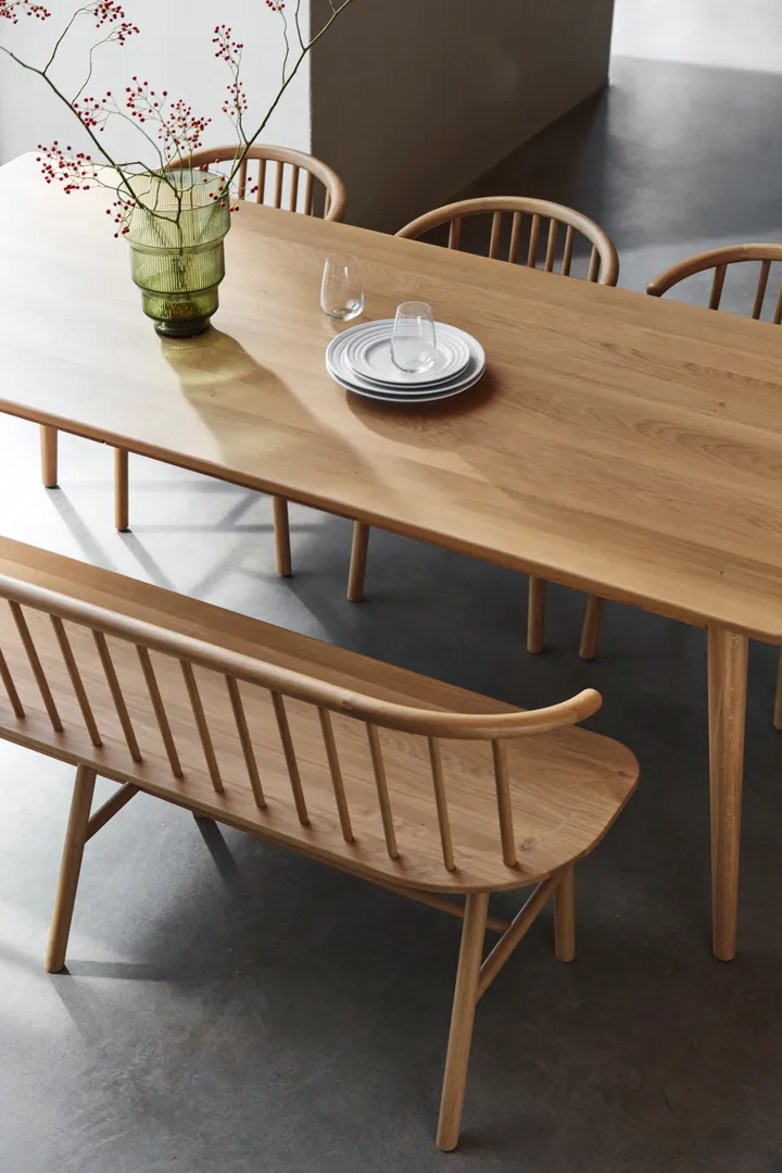 A VIOR keittiön sohva ruotsalaiselta NJRDirta on Bernadotte & Kylbergin suunnittelema ja korkealaatuisesta FSC-merkitty tammesta valmistettu. VIOR on kunnianosoitus yhteisöllisyydelle ja perinteelle. Viikinkiaikojen juurista ammentaen on kehitetty sälepenkki, joka yhdistää tammen luonnollisen lämpöä orgaanisiin muotoihin luoden paikan merkityksellisille keskusteluille ja läheisille hetkille ruokapöydän ääressä. Anna VIORin tulla keskeiseksi osaksi arjen kohtaamisia läheisten kanssa, jossa jokainen linja ja kaarevuus kutsuvat elinikäisiin muistoihin. Tutustu NJRDin ensimmäiseen huonekalukokoelmaan ja koe muotoilu, joka juhlistaa elämää ja yhteisiä hetkiä.