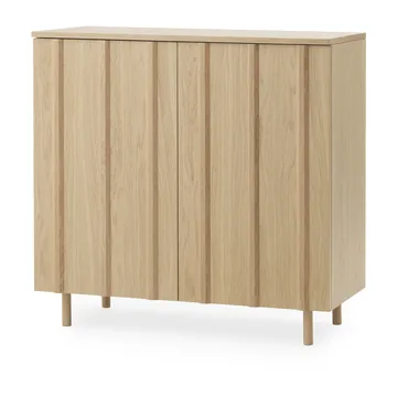 Rib kaappi 96 x 98,5 cm Normann Copenhagenilta on suunniteltu Simon Legaldin toimesta. Hänen inspiraationsa säleikköjen koristeelliseen muotoon kaapin ovissa tulee 1960-luvulla rakennettujen skandinaavisten kesämökkien julkisivuista. Kaapin sisällä olevat hyllyt ovat siirrettävissä tarpeen mukaan