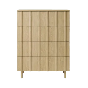 Rib lipasto 4 laatikkoa Normann Copenhagenilta on valmistettu lakatusta tammiviilusta ja massiivipuusta. 1960-luvun pohjoismaisten kesähuviloiden skandinaavisesta muotoilusta inspiroitunut Rib-mallisto käyttää trapetsinmuotoisia puupaneeleja, jotka luovat ajattoman ja luonteikkaan ilmeen. Rib lipasto on saatavilla tammen sävyssä tai pehmeässä mustassa viimeistelyssä, ja se yhdistää kestävyyden minimalistiseen ja luonnolliseen tyyliin. Käytä sitä makuuhuoneessa vaatteiden ja asusteiden järjestämiseen tai eteisessä eleganttina ja käytännöllisenä säilytysratkaisuna.