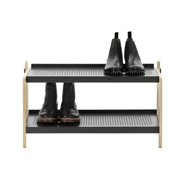 Sko-kenkähylly Normann Copenhagenilta on tyylikäs ja jämäkkä kenkähylly, jonka on suunnitellut Simon Legald. Se yhdistää pohjoismaisen pehmeyden ja rouhean teollisuushengen vaaleasta pyökistä ja teräksisistä hyllyistä koostuvassa kokonaisuudessa. Tämä kenkähylly tarjoaa sekä toiminnallisuutta että estetiikkaa – täydellinen sinulle, joka haluat yksinkertaisen mutta vankan säilytysratkaisun kengillesi. Sko-kenkähylly on valmistettu kestävästä skandinaavisesta materiaalista ja koostuu pyökistä tehdystä puukehikosta ja kahdesta perforoidusta teräshyllystä, jotka luovat kauniita varjoja lattialle. Muotoilu on pelkistetty ja keskittyy yksityiskohtiin, kuten näkyviin ruuveihin ja pultteihin, mikä vahvistaa sen teollista luonnetta. Simon Legald on halunnut nostaa arkipäiväistä tuotetta, joka usein jää designmaailmassa huomiotta, mikä tekee Skosta ainutlaatuisen ja toiminnallisen osan kotia