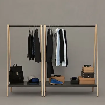Toj vaateripustin Normann Copenhagenilta, suunniteltu Simon Legaldin toimesta, on toimiva ja käytännöllinen ratkaisu vaatteiden, kenkien ja laukkujen järjestämiseen. Vankan rakenteensa ansiosta se sopii täydellisesti erilaisiin tiloihin kuten eteiseen, olohuoneeseen, toimistoon tai makuuhuoneeseen ja tarjoaa runsaasti säilytystilaa järjestyksen ylläpitämiseen